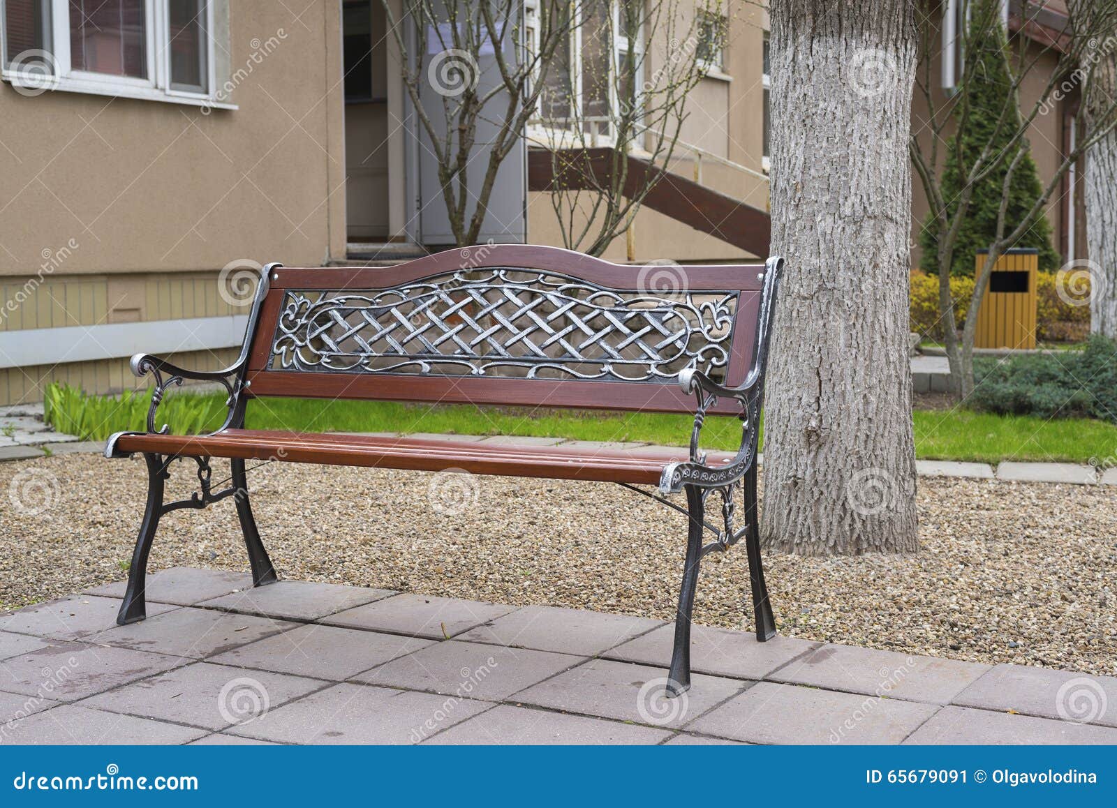 Grande pelouse de maison de banc gentille.