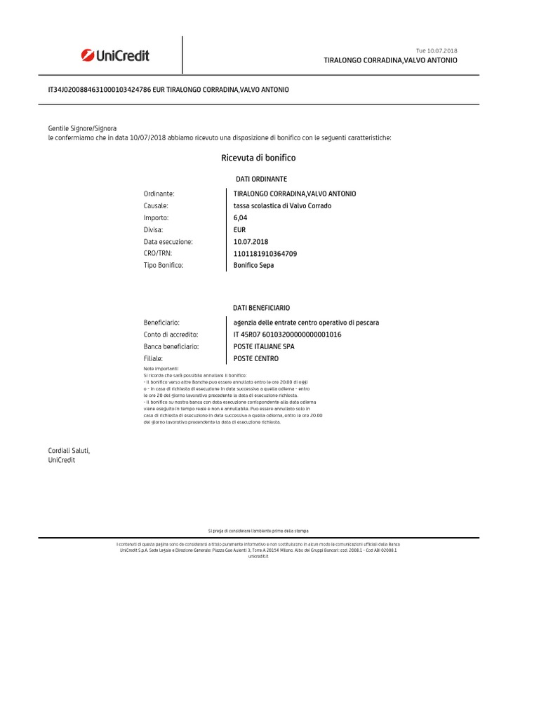 New Modulo Bonifico Bancario Unicredit Pics. Un bonifico bancario è un bonifico emesso da un conto corrente bancario. È possibile annullare bonifico unicredit online?