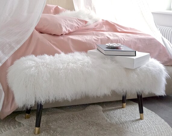 Banc Mdf Recouvert De Fausse Fourrure Blanc Pieds En Metal Noir Meinelampe from cdn02.plentymarkets.com