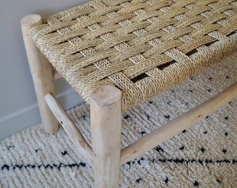 The Best Banc Marocain Bois Background. Sa fabrication artisanale, de la taille du bois au tressage de l'assise en feuille de palmier, lui donne un aspect brut. Banc marocain tressé tissé, banc marocain doum et eucalyptus.