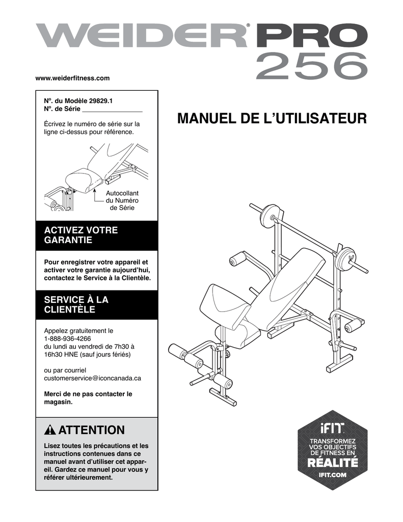 Popular weider pro 256 bench manual pages. ›appareils et accessoires de musculation. Thank you for selecting the weider® pro 256 weight bench. The fixed upright and leg developer help you strengthen specific areas, while the preacher curl pad enables you to isolate your arm movement for proper form.
