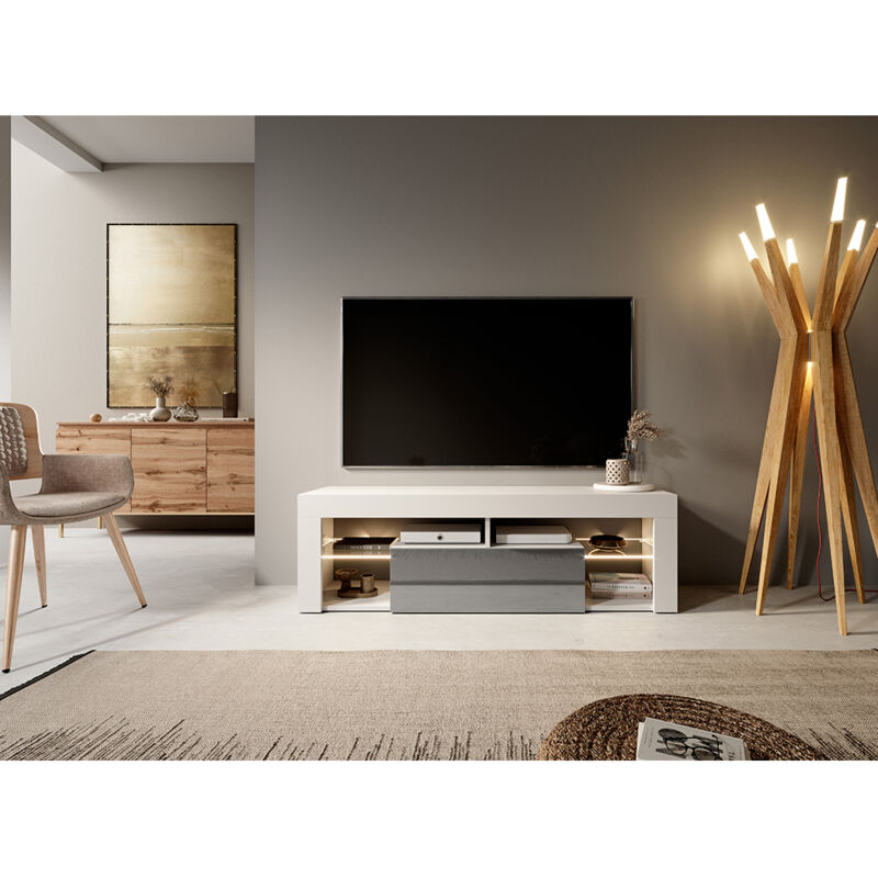 Relookez votre habitat avec l'ensemble de meuble tv blanc laqué brillant et effet blanc marbré design pompei !